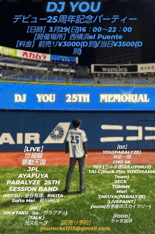 イベント当日はDJ YOUの地元横浜に馴染みのあるDJ、アーティストを集めて開催を予定しています。